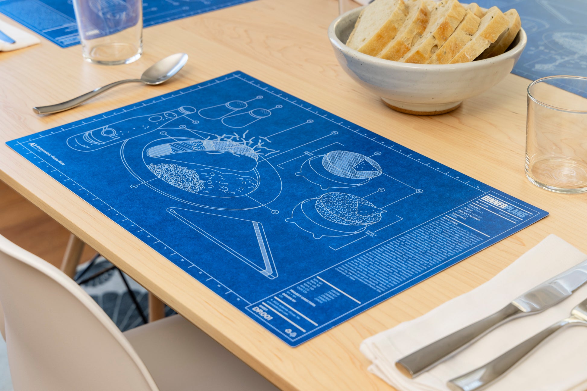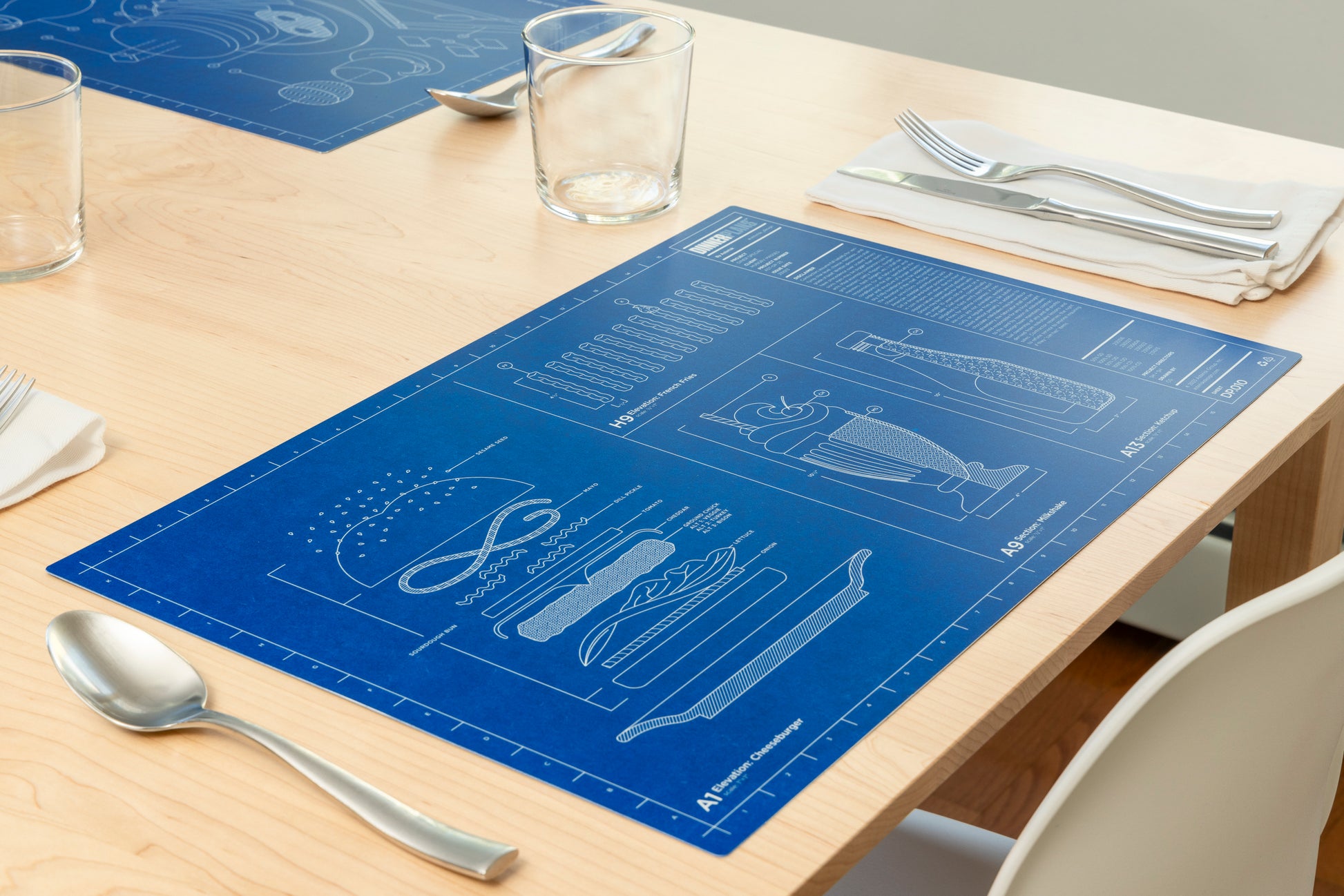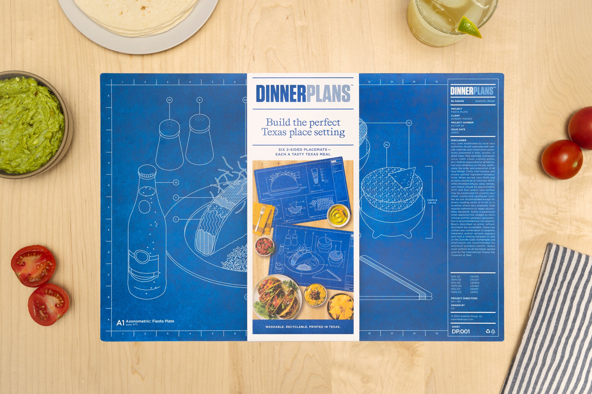 These durable, washable blueprint-style placemats document Texas' favorite foods in the visual language of architecture, engineering and construction. Each set of six, two-sided, placemats features tacos, BBQ, burgers and fries, pancakes, ramen, and sushi. 12x18"