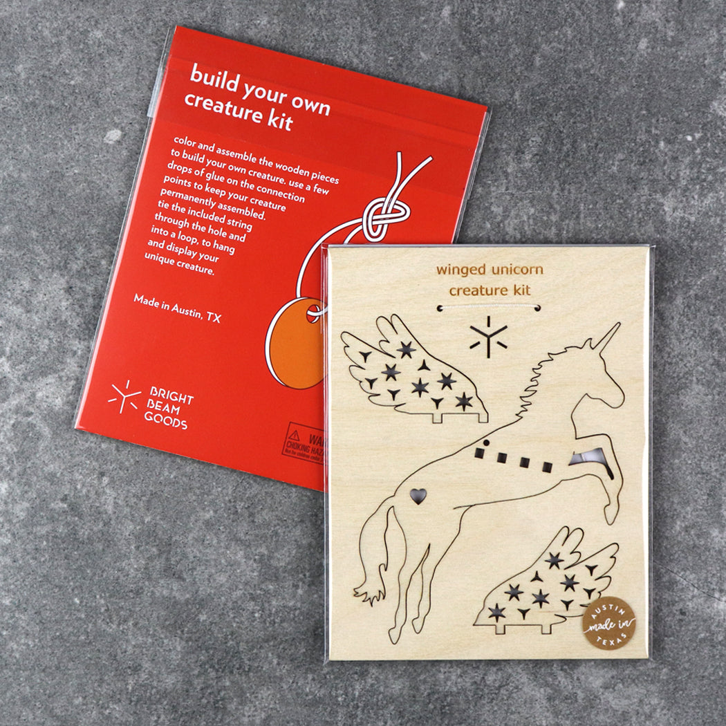 This birch wood kit comes flat-packed for easy shipping and gifting. While it does include a string to hang your masterpiece with, we suggest adding a dab of glue here and there if you aren't intending to store it flat after you complete it.