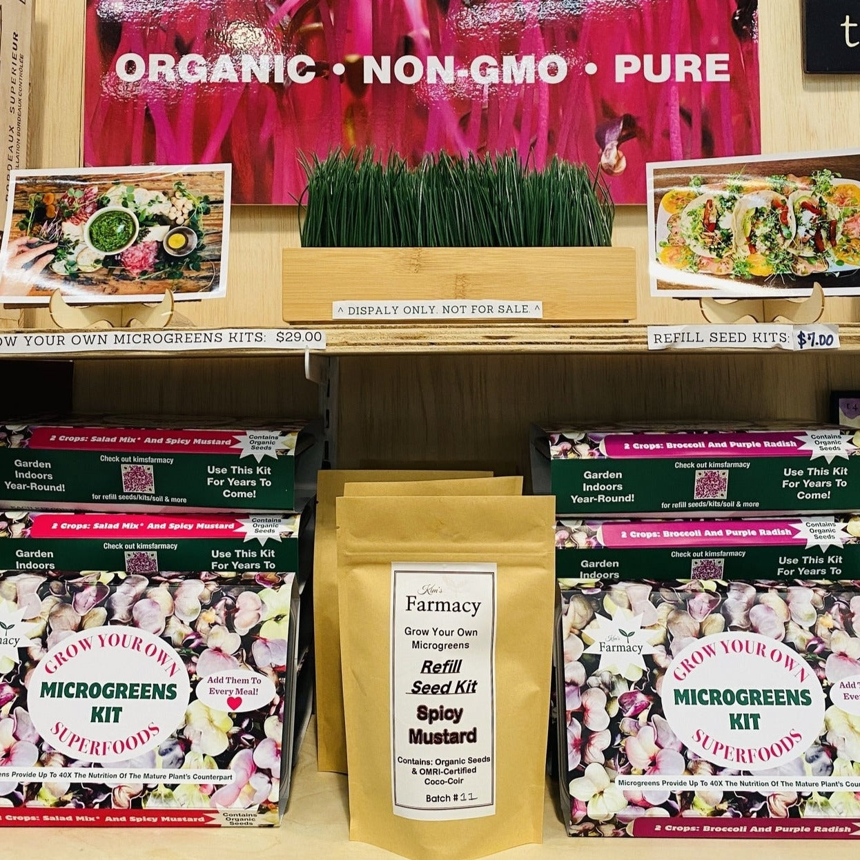 Grow time takes typically 7-14 days depending on the crop. These kits are meant to be used for many years to come! Refill with Kim’s Farmacy ‘Seed Refill Kits’ which include pre-measured organic seeds and coco-coir.