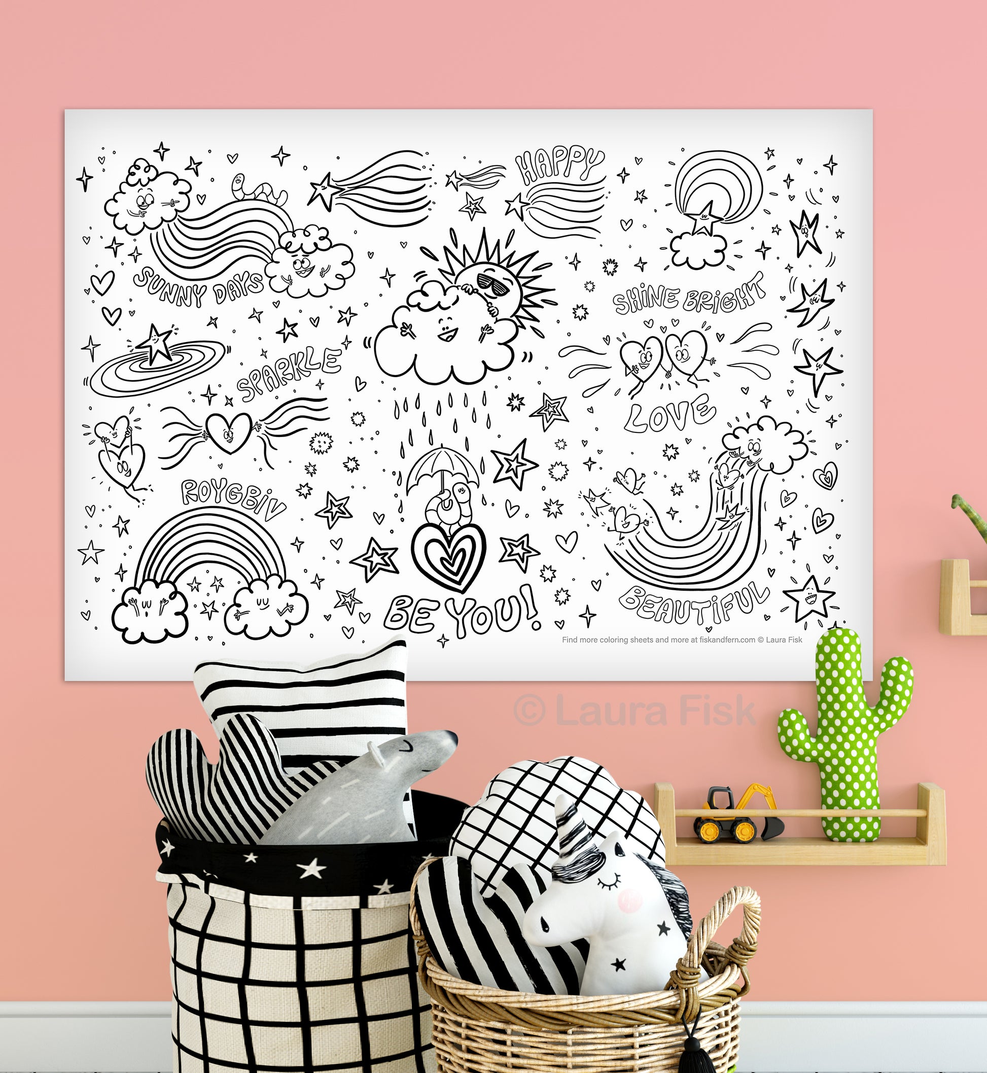 Sized 2 feet by 3 feet (24” x 36”) printed on 20# lightweight paper great for crayons, colored pencils and markers! Great for families and teachers, great to use as wrapping paper as well.