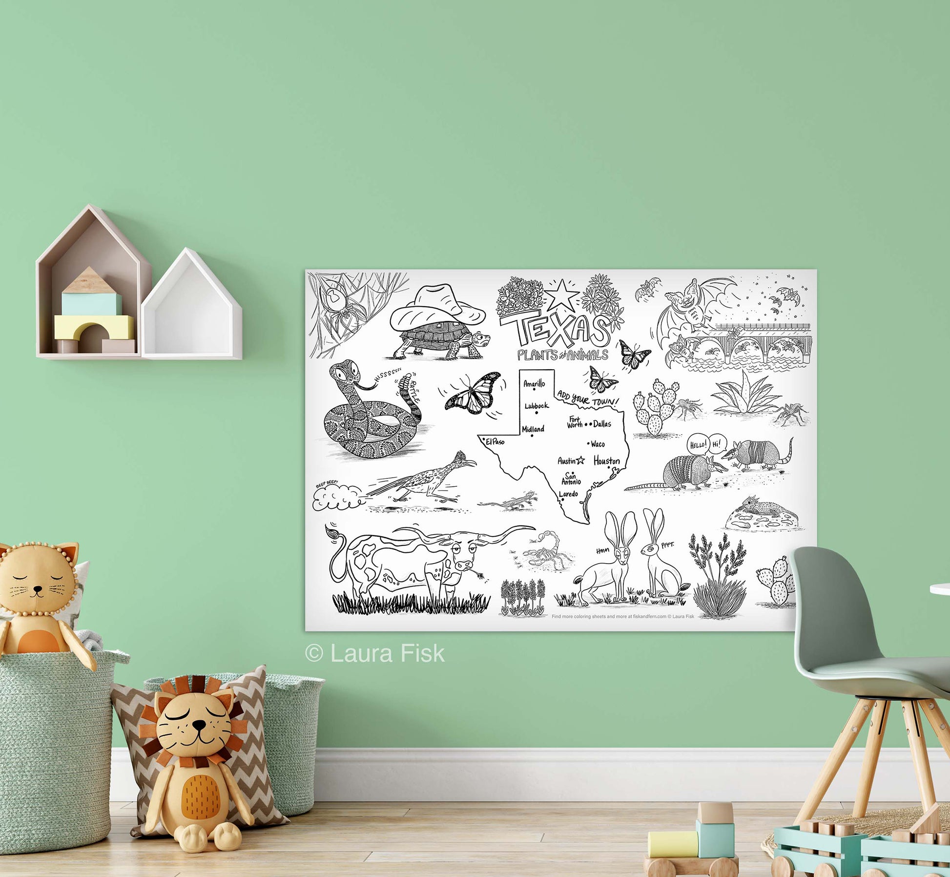 TEXAS PLANTS AND ANIMALS: There's so many cool animals and plants in Texas and so fun to see them on an extra large coloring sheet!