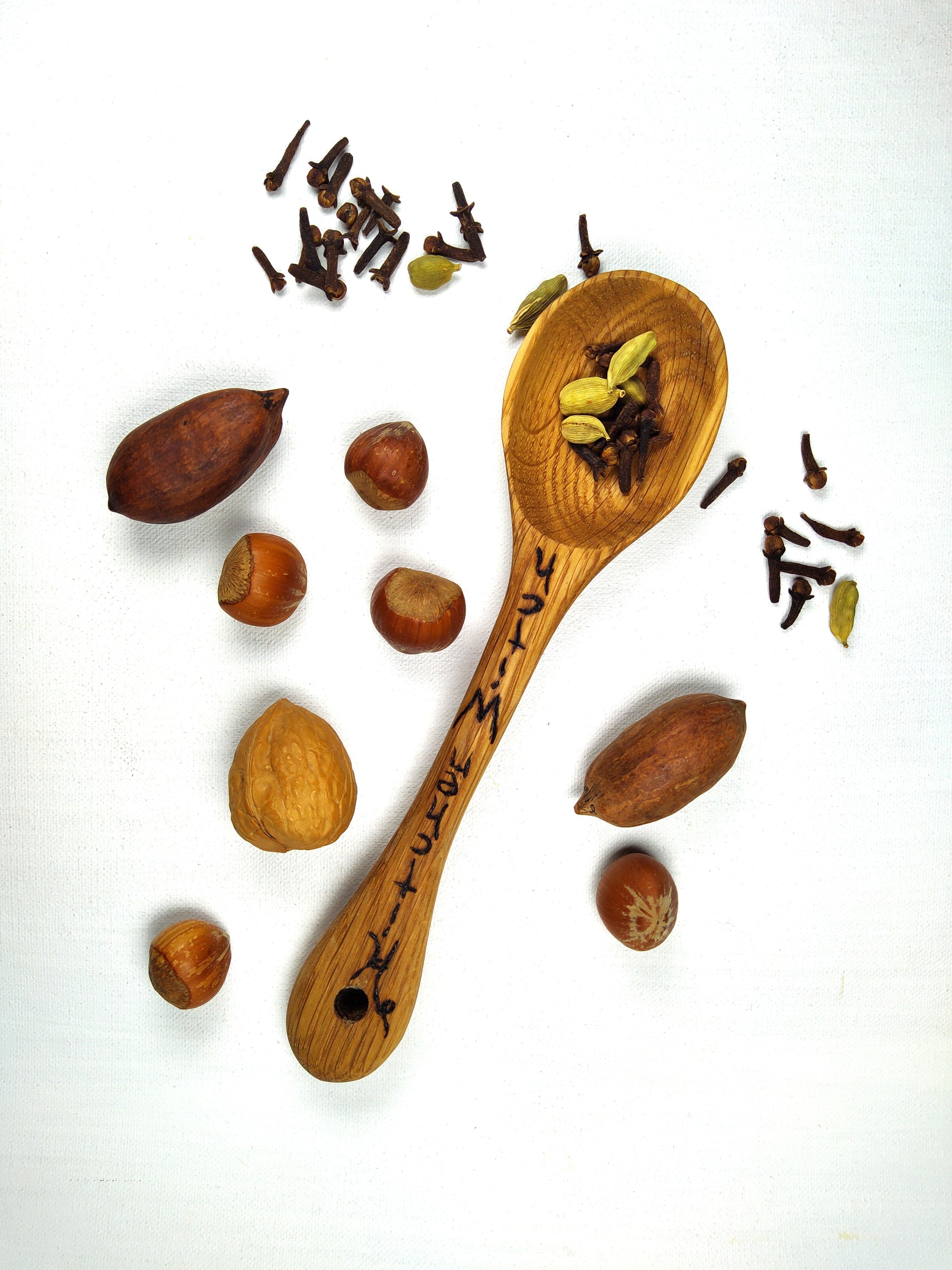 Hand carved Oak wood spoon for cooking in natural kitchen. Wood burned pyrography drawn with the words "Kitchen Witch". You will receive one of the items shown. Each is slightly unique.