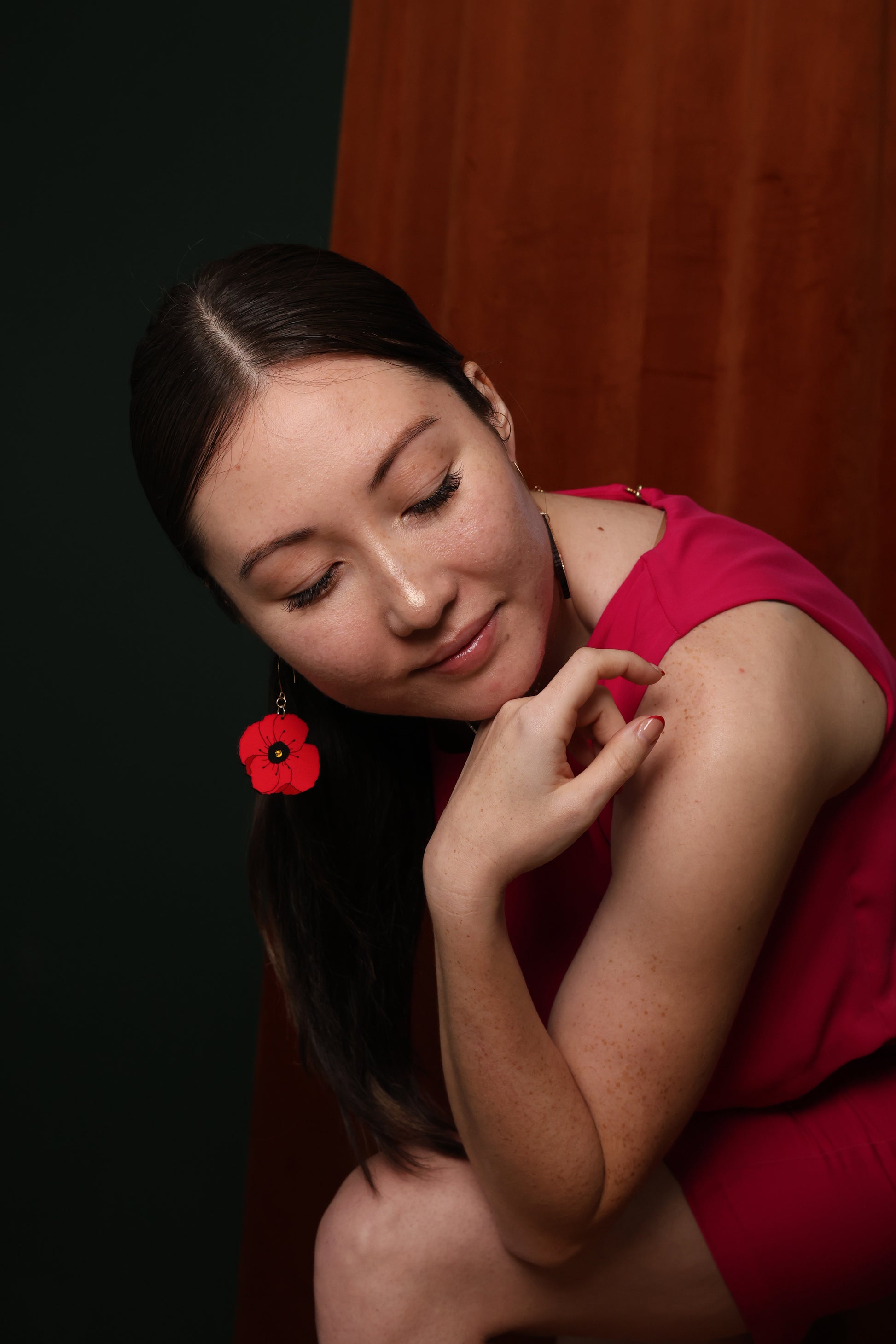 Cut from sustainable Baltic Birchwood then individually hand-painted. Hangs from 18k gold plated surgical steel hoop. Tarnish and irritation free.