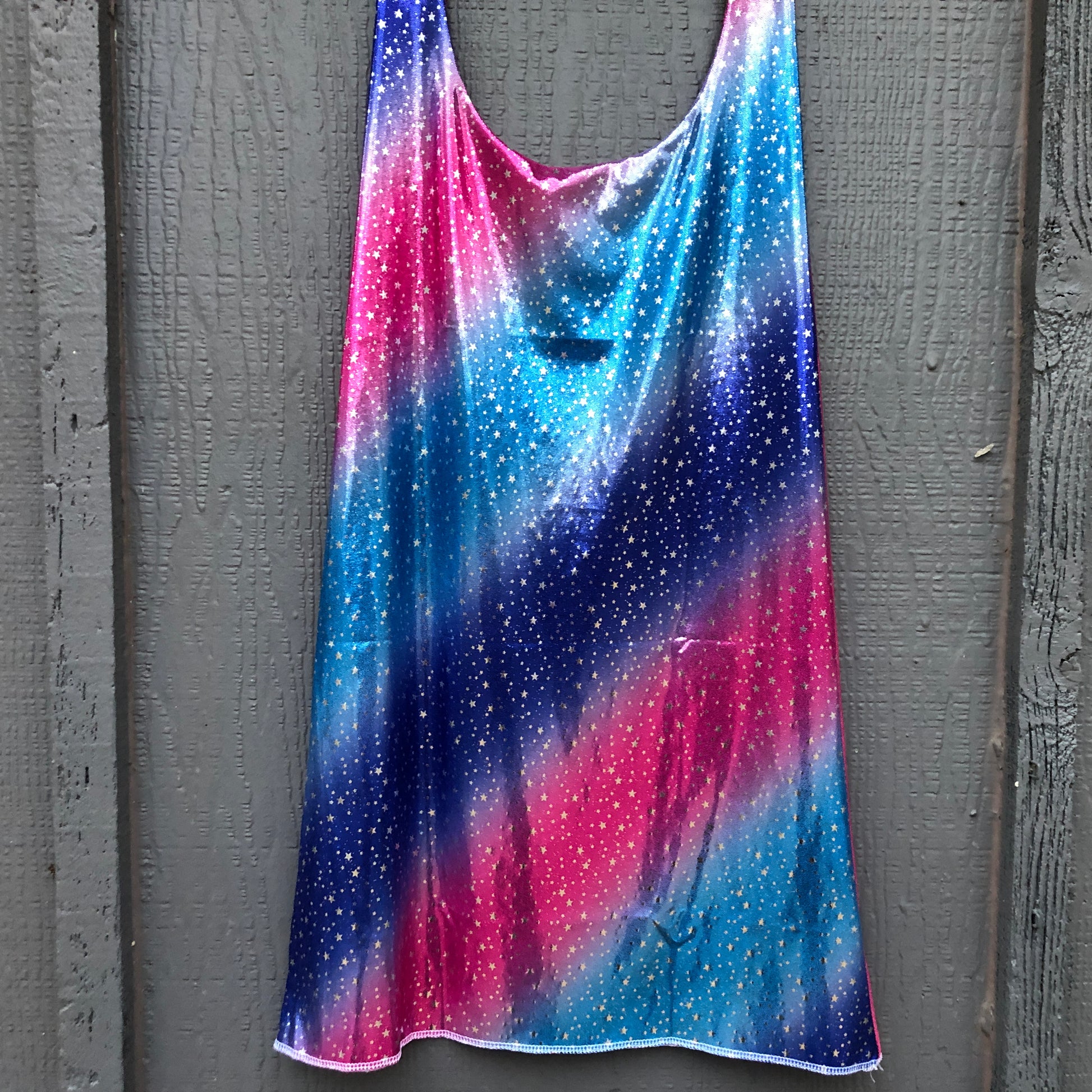 Reversible cape made with soft and shiny fabric to fuel imaginative play!