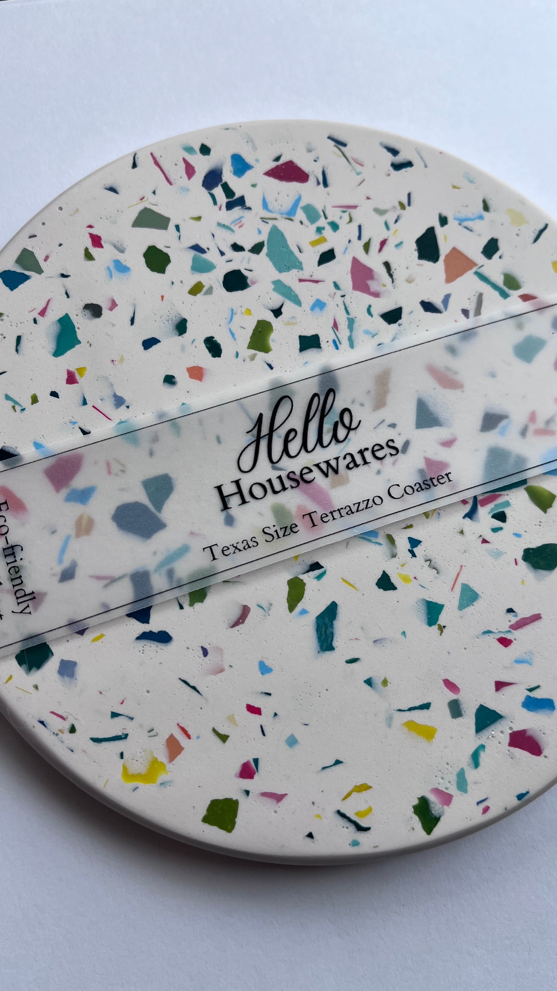 These overly generous sized coasters come in at a whopping six inches! No more making sure your drink is perfectly balanced on a regular size coaster. These unique cork bottom coasters add a fun terrazzo pop while keeping your surfaces water-ring and scratch free. Handcrafted from a nontoxic, eco-friendly, composite material with a cork base. Cast and polished by hand, then finished with our house made wax for additional protection from drips and condensation. You will have small bubbles or slight variations in color which are natural and add individuality.
